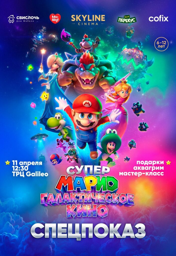 Приглашаем юных космонавтов и их родителей 11 апреля в 12.30 на спецпоказ фильма «Супер Марио: Галактическое кино» в SKYLINE Cinema в ТРЦ Galileo!